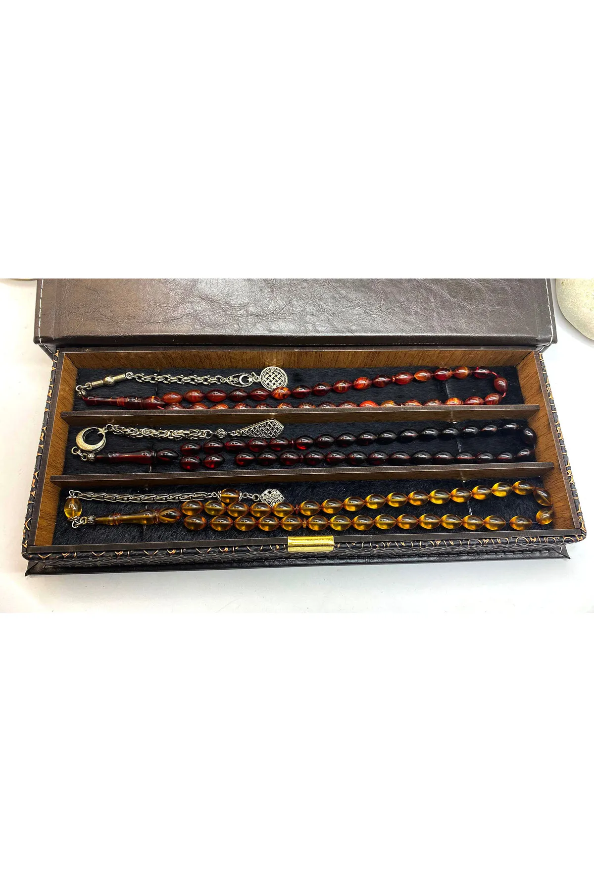 Kehribar ve Katalin tesbihler, koleksiyon değeri taşıyan özel tasarımlar arasında yer alır. Bu 3’lü özel lot, iki adet ateş kehribar ve bir adet eski katalin tesbihten oluşmaktadır.