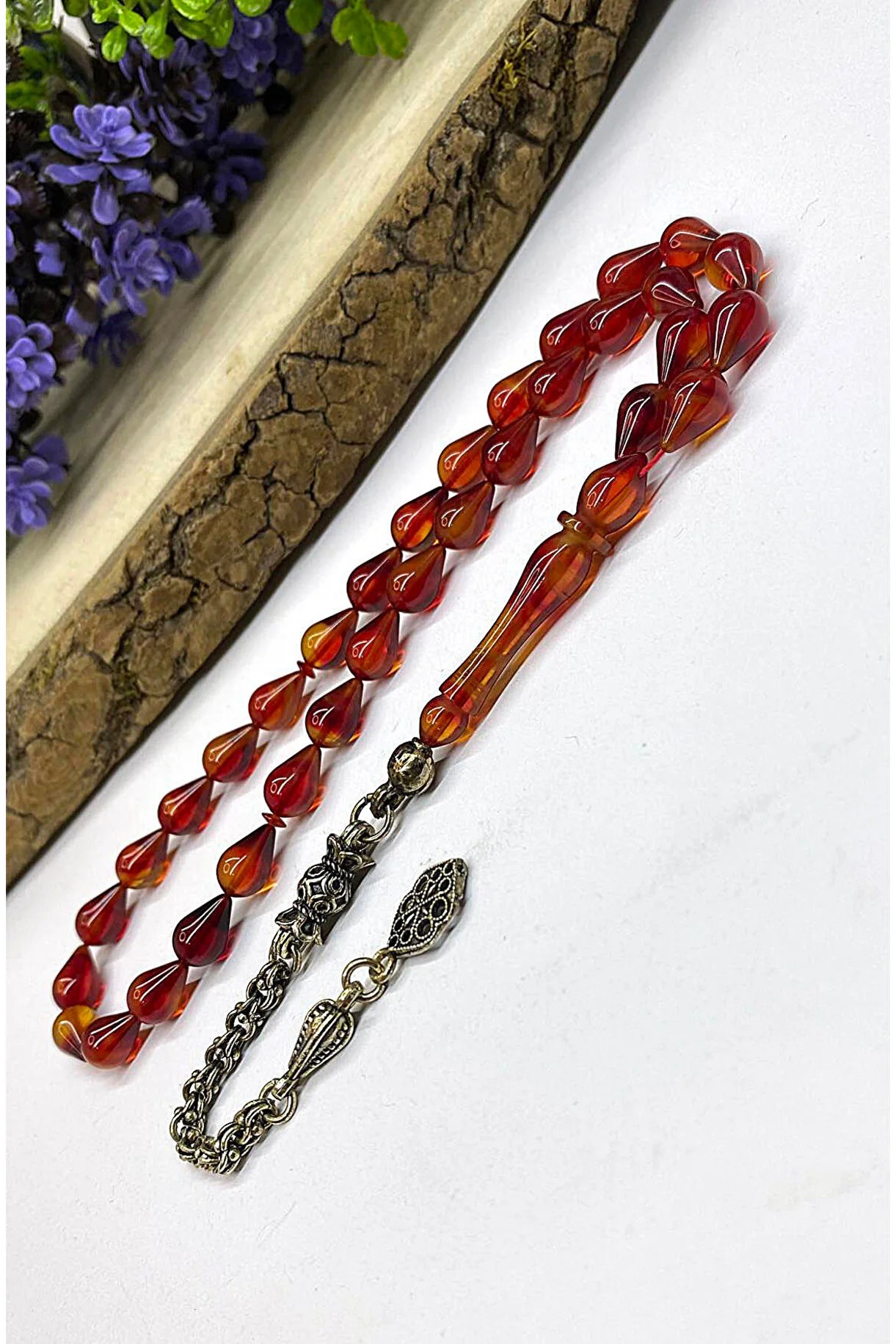 Canlı kırmızı rengi ve zarif damla formuyla öne çıkan ateş kehribar tesbih, dikkat çekici görünümü ve şık tasarımıyla her ortamda fark yaratır. Günlük kullanımda ve özel günlerde stilinizi tamamlayan modern bir aksesuardır.