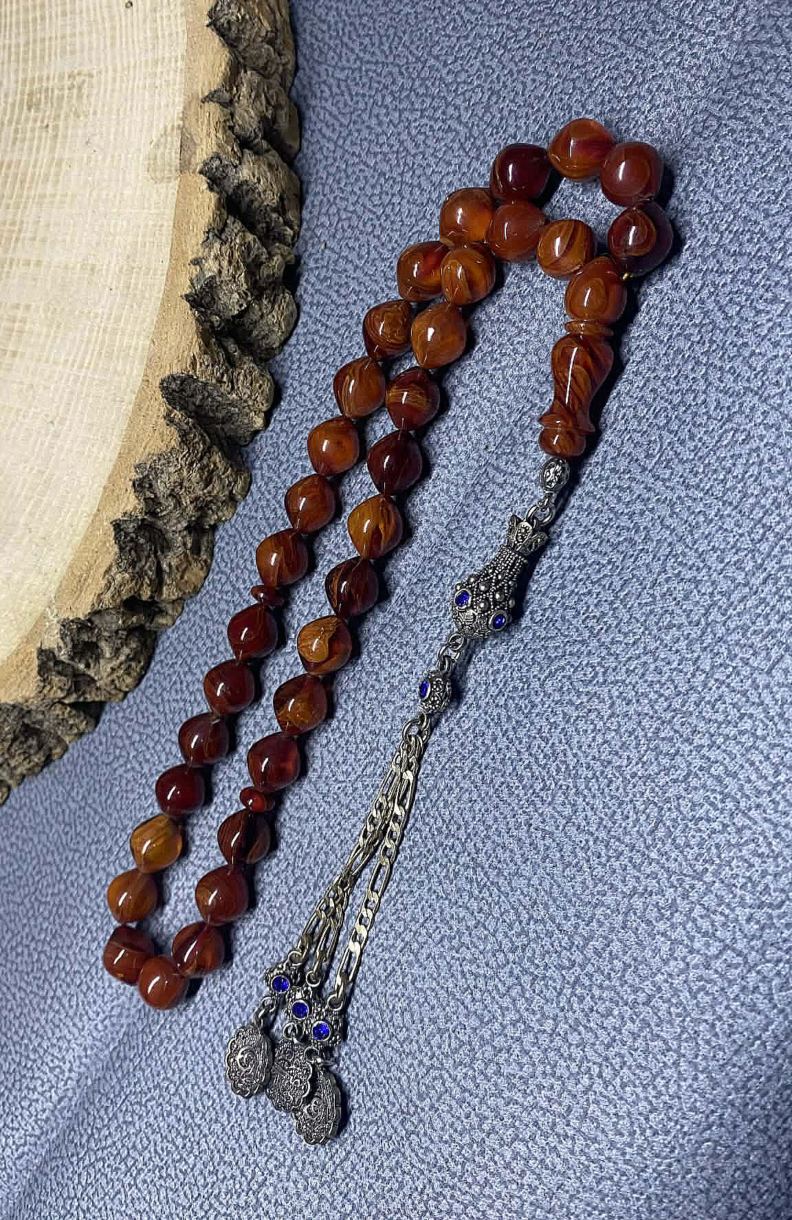 Özel kesim formu, hareli ve damarlı yapısıyla dikkat çeken bu 12×14 mm sıkma kehribar tesbih, estetik görünümü ve koleksiyon değeri ile öne çıkan nadide parçalardan biridir. Eski üretim olması ve zamanla renk almış yapısı, ürüne doğal bir karakter ve derinlik kazandırmaktadır.